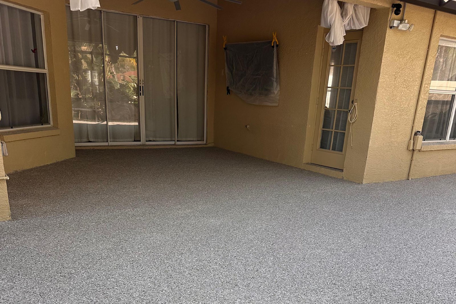 Epoxy patio flooring creates attractive, weather-resistant outdoor surfaces. We install systems engineered to handle Florida’s climate while improving slip resistance, durability, and overall appearance—perfect for residential patios and commercial outdoor areas.
